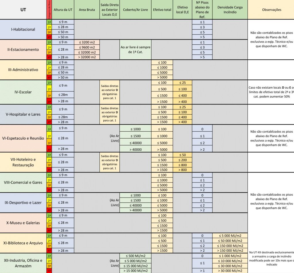 As Utilizações Tipo (UT) são classificadas numa das 4 categorias de risco, sendo a 1ª categoria a menos gravosa e a 4ª categoria a mais gravosa.