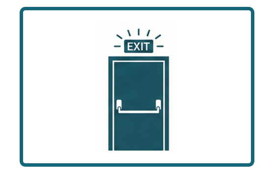 As portas utilizáveis por mais de 50 pessoas devem abrir facilmente no sentido da saída e dispensar dispositivos de trancamento e estarem sinalizadas.